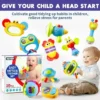 🌈 Hochets et anneaux de dentition colorés et lumineux – Parfaits pour accompagner votre tout-petit à chaque étape de son développement ! 🍼✨ Chaque hochet propose des formes, des textures et des activités uniques pour développer la motricité fine 🤲 et la coordination œil-main 👀.